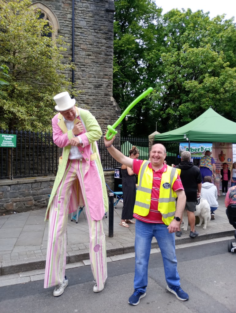 Stewarding largely involves walking around the event locations with a Ffrindiau Tyleri Hi Viz jacket looking out for potential problems and answering questions from stallholders and visitors.